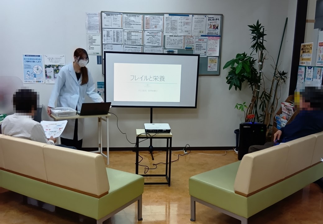 今回の健康教室ではフレイル予防のための食事や簡単に取り組める運動についてお話をし、握力測定も行いました。