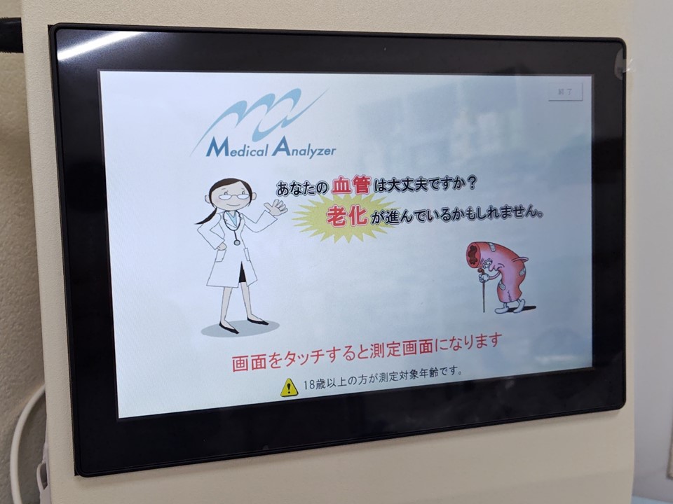 血管年齢測定できる機械を用いて血管年齢を見ていただき、普段は相談しづらい「食事のこと」についてご質問をいただき、サエラ薬局在籍の管理栄養士からのアドバイスで解決されたようでした。
