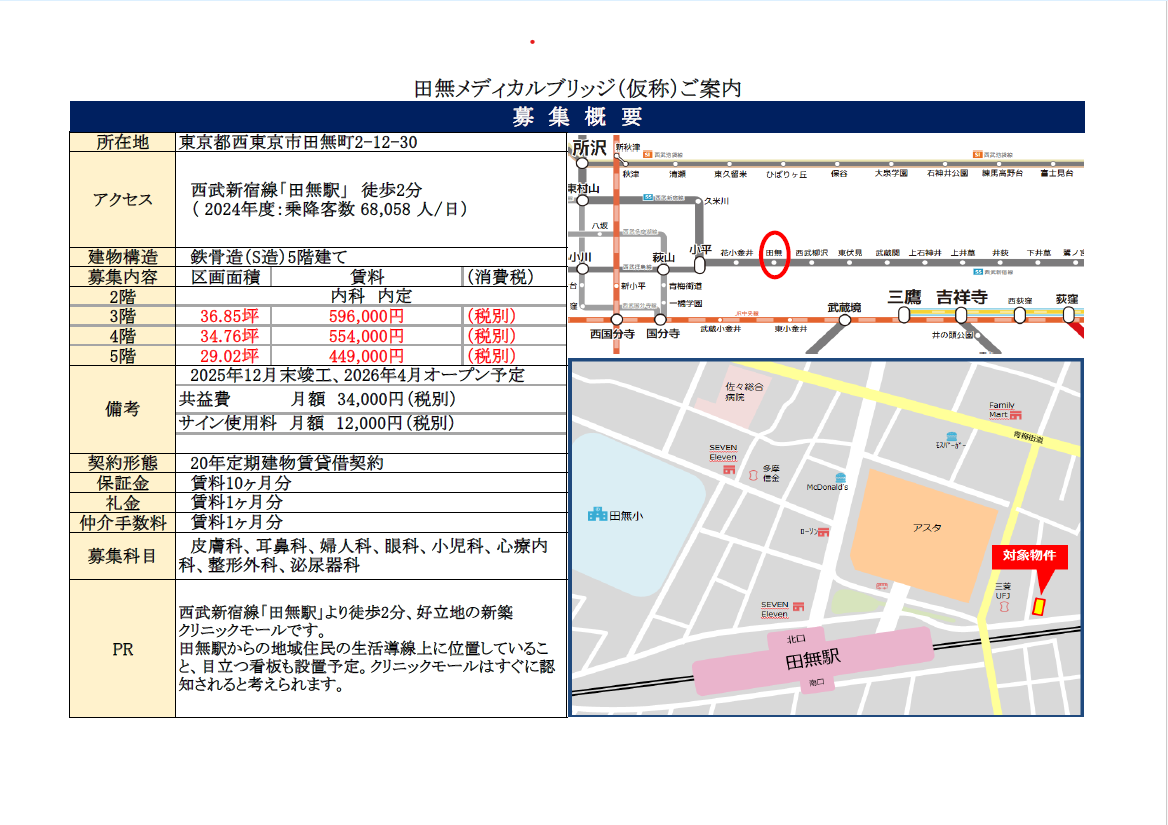 西部新宿線「田無駅」より徒歩3分、好立地の新築クリニックモールです。